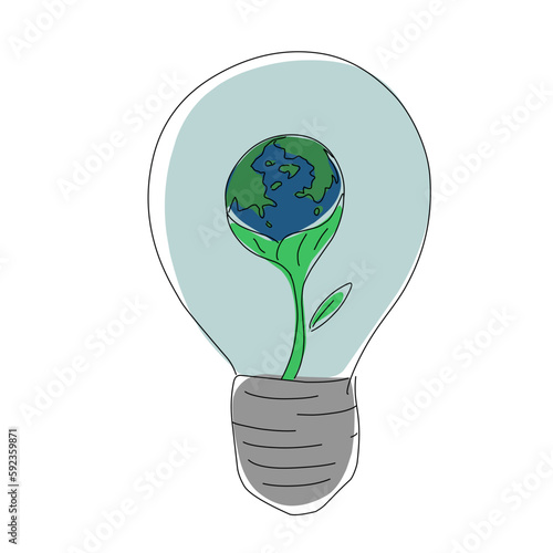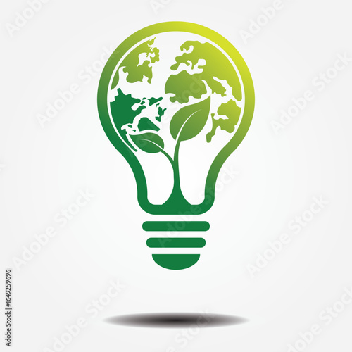 Векторная иллюстрация концепции зеленой энергии в стиле бумажного искусства. Зеленая лампа с цветами и бабочками. Экономия энергии, экология.