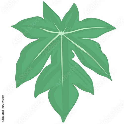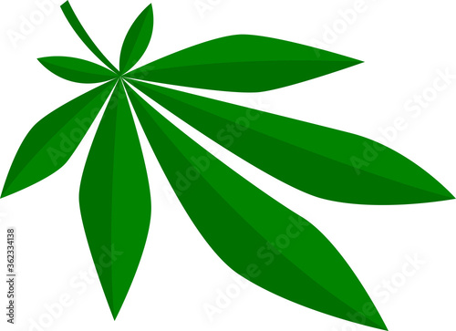 Вектор зеленых пальмовых листьев. Изолированная ветвь тропического дерева. Значок растения. Иллюстрация дизайна листвы тропических лесов джунглей. Экзотическая флора на белом фоне. Ботанический объект с травами