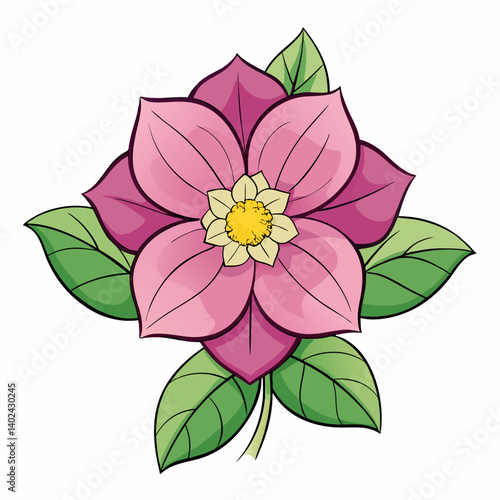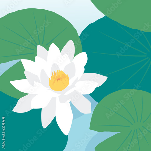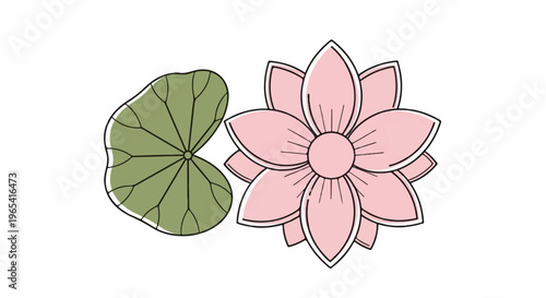зеленый лист водяной лилии и розовый цветущий цветок векторная иконка, изолированная на белом фоне.