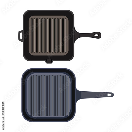 Вектор значка сковороды-гриль с видом сверху. Квадратная кастрюля для приготовления мяса на гриле, колбасы, изолированная на белом фоне