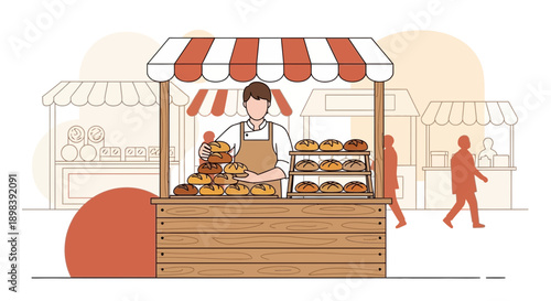 Продуктовый магазин с продавцом-кассиром мужского пола и покупательницей женского пола, покупающей яблоки, векторная иллюстрация дизайна в плоском стиле. Продуктовый магазин, супермаркет.
