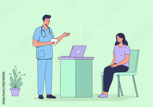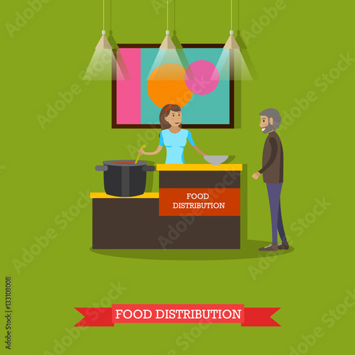 Векторная иллюстрация женщины-кассира продуктового магазина и мужчины-покупателя, оплачивающего покупки. Дизайн в плоском стиле.