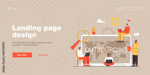 Векторная целевая страница для службы покупок в продуктовом магазине. Иллюстрация покупателей, стоящих в очереди в продуктовом супермаркете. Концепция покупок, распродаж, консюмеризма и очереди в магазине