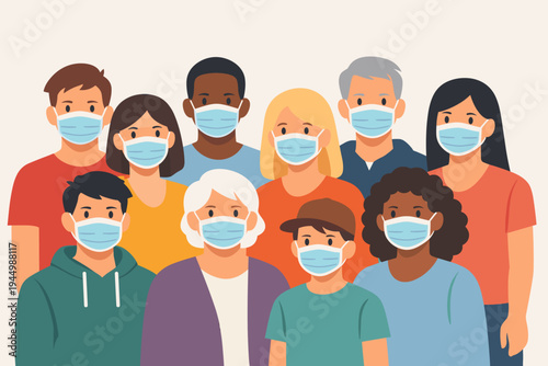 Группа дружелюбной разнообразной международной молодежи и взрослых людей портретная векторная иллюстрация, изолированная на белом фоне