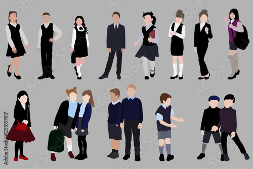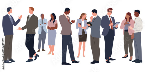 Группа аспирантов в мантии и выпускной шапочке. Студенты университета держат диплом и празднуют день окончания учебы. Изолированные люди, векторная иллюстрация. Церемония в колледже, ученая степень.