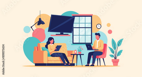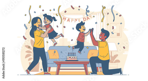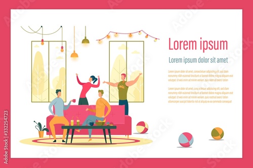 Группа людей празднует корпоративную вечеринку с тортом, пиццей, вином, векторной плоской иллюстрацией. Празднование Дня рождения с друзьями. Счастливого праздника.
