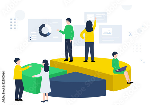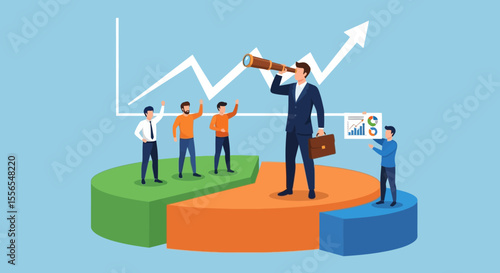 Группа протестующих людей, активисты с транспарантами-плакатами и мужчина-политик за трибуной, стоящий как на качелях, плоская векторная изометрическая иллюстрация. Политический протест забастовка демонстрационный кризис