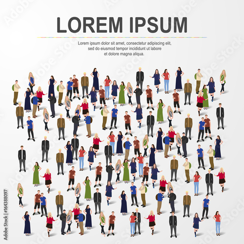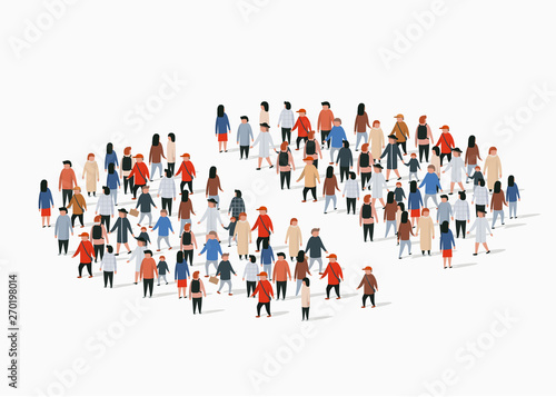 Группа людей, стоящих в очереди на инъекцию вакцины против Covid-19, плоская векторная иллюстрация. Очередь на вакцинацию от коронавируса. Популяционный иммунитет. Программа массовой вакцинации.