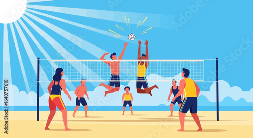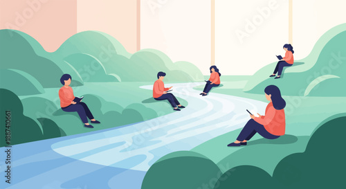 Группа детей-подростков катается на скейтборде в городском парке для скейтбординга. Экстремальный досуг спортивные развлечения во время летних каникул векторная иллюстрация