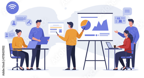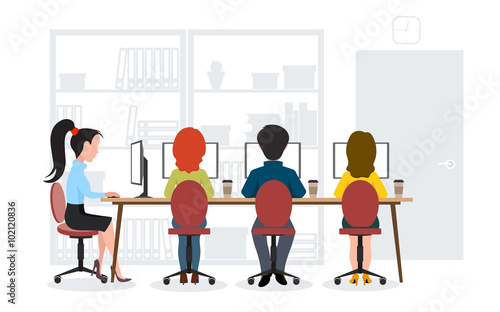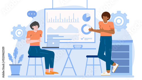 Женский психолог консультирует группу молодых людей, страдающих депрессией, паническим расстройством, социальной тревожностью, другими проблемами, векторная иллюстрация. Концепция групповой психотерапии для страницы веб-сайта и т.д.