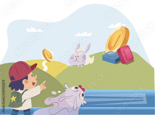 Ангел-хранитель спасает ребенка, тонущего в озере или реке векторная иллюстрация. Религиозный защитник, защищающий ребенка от несчастных случаев в дикой воде