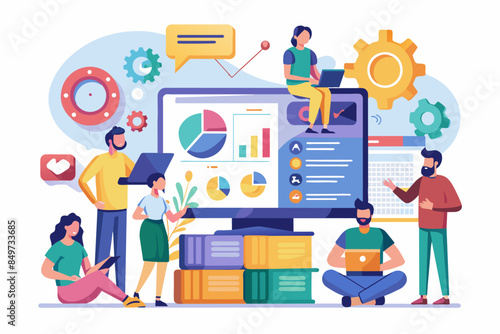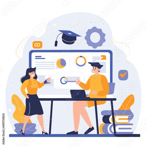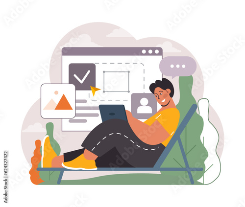 Вектор видеосвязи. Персонаж плоских мультяшных людей работает удаленно, проводит онлайн-собрания, обменивается сообщениями в Интернете и проводит видеоконференции из дома иллюстрация