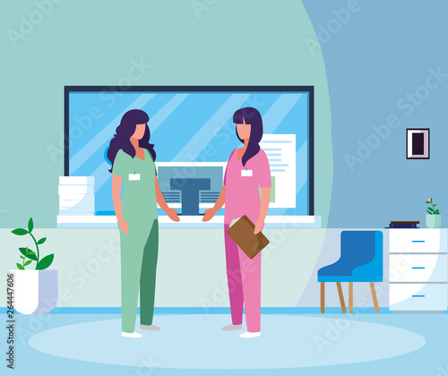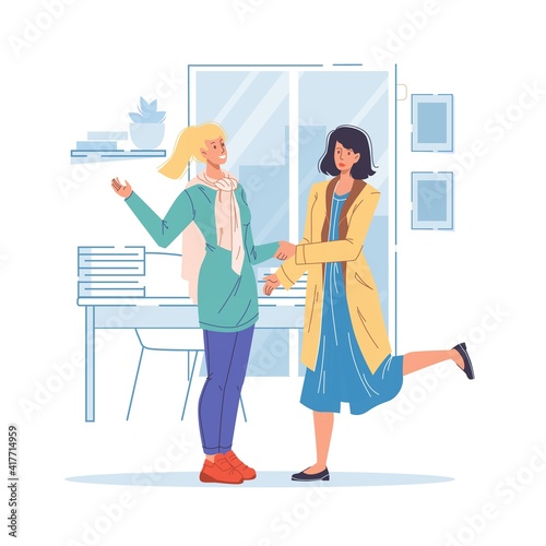 Векторная иллюстрация женщины-врача-гинеколога, консультирующей свою беременную пациентку. Консультация гинеколога элемент дизайна в плоском стиле.