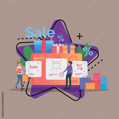 Киберпреступность, хакерская атака, векторная плоская иллюстрация. Огромный компьютерный монитор с персонажами-хакерами, крадущими пароль для входа на экран, несущими кредитную карту, сумку с сообщениями электронной почты. Фишинговая афера.
