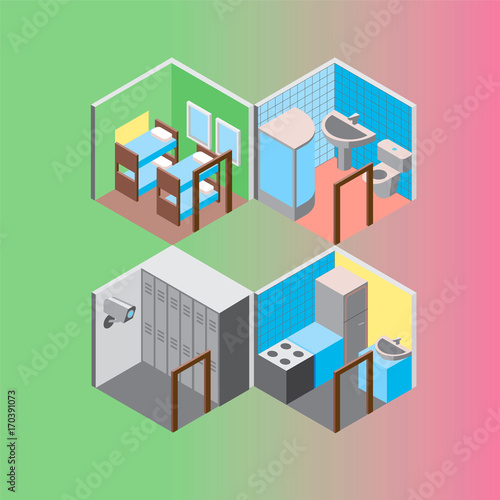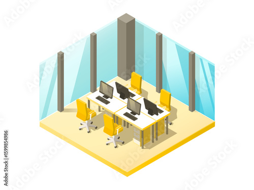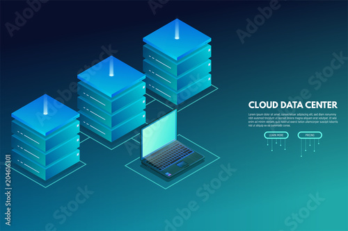 Блок-схема процесса взлома сервера. Векторная изометрическая иллюстрация. Анонимный хакер-программист в одежде с капюшоном взламывает центр обработки данных с помощью ноутбука.