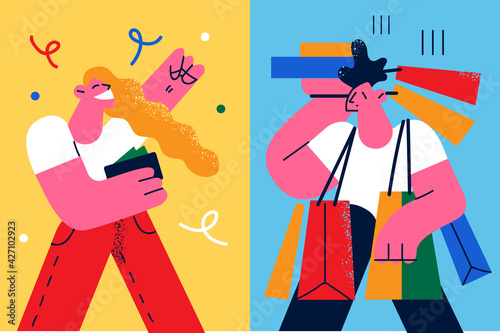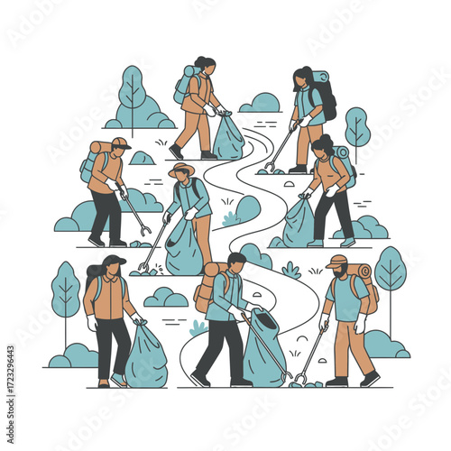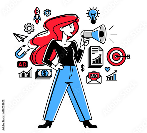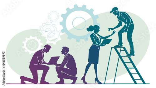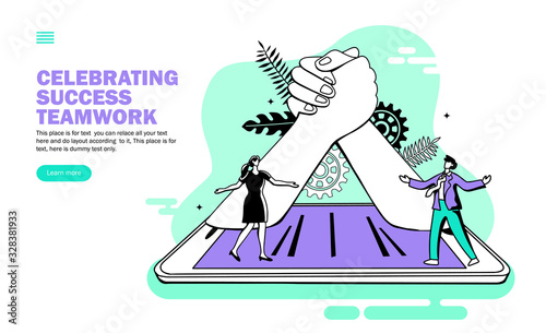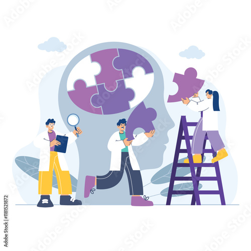 Огромная женщина и микро-персонажи парикмахеры завивают волосы с помощью бигуди, векторная иллюстрация. Концепция услуг салона красоты для веб-баннера, страницы веб-сайта и т.д.