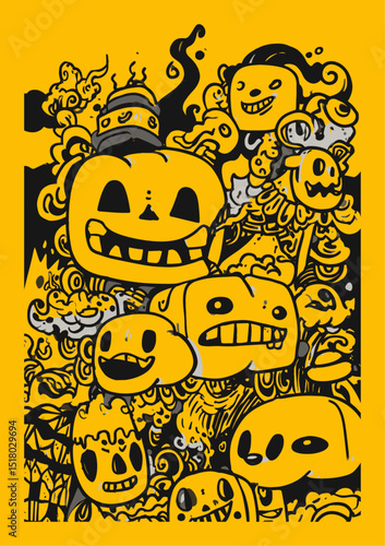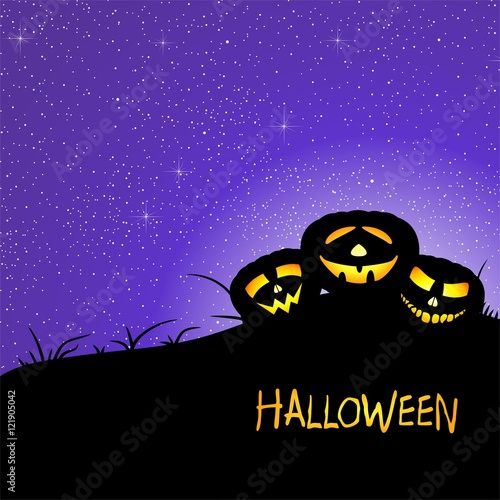 Векторный дизайн открытки на Хэллоуин с луной, ночными облаками, летающей летучей мышью и жуткой тыквой. Пригласительный плакат, поздравительная открытка с надписью