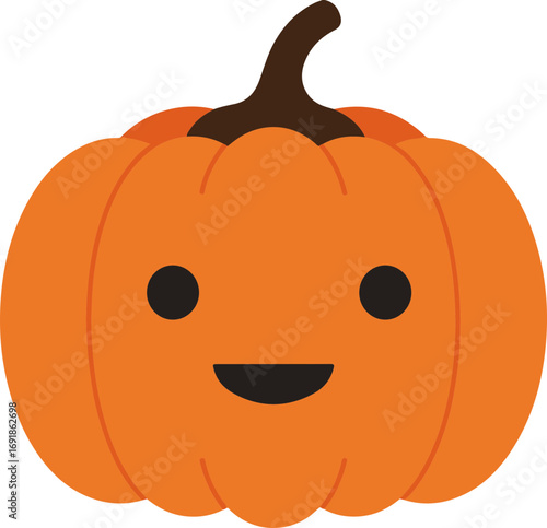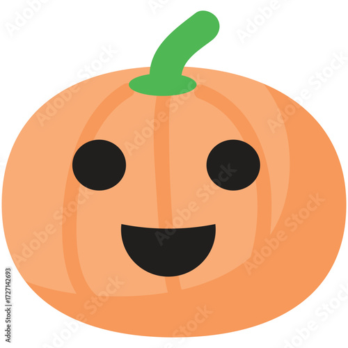 Вектор тыквы на Хэллоуин. Симпатичное изображение лица со счастливой улыбкой. Вырезание оранжевого фонаря-домкрата для празднования октябрьской вечеринки. Тыква с жутким рисунком, изолированная на белом фоне