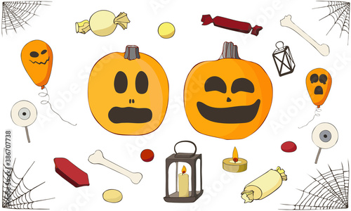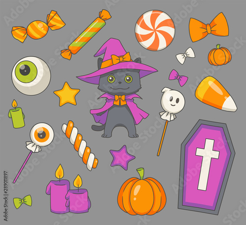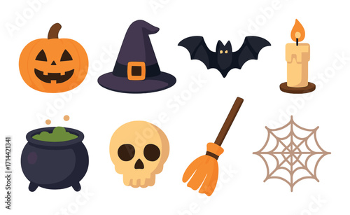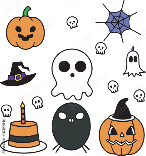 Хэллоуин векторный жуткий 3d-значок. Изометрический призрак ужасов, тыква, летучая мышь, паук, подарочная коробка, свеча, глаз. Череп и шляпа изолированы друг от друга на белом фоне. Иллюстрация октябрьской вечеринки "Кошелек или жизнь"