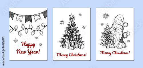 Набор векторных баннеров с глинтвейном, нарисованных вручную. Черно-белые эскизные плакаты с бокалом вина. Шаблоны оформления карточек меню в ретро винтажном стиле