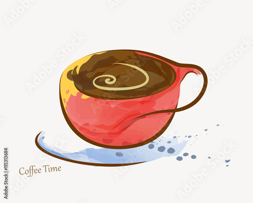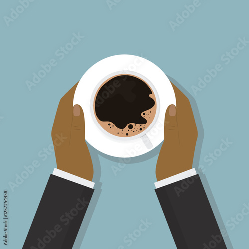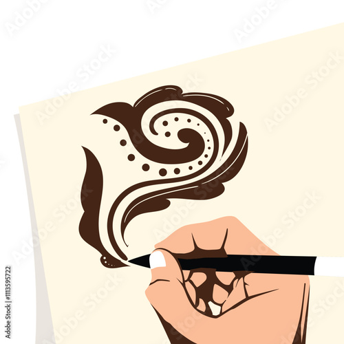 Рука, держащая векторный значок ароматного кофейного напитка, изолированный на белом фоне