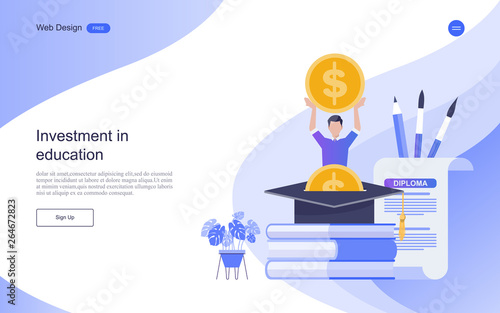 Рука, кладущая монету в копилку, стоящую на стопке книг, диплом, выпускная шляпа, плоская векторная иллюстрация. Студенческий кредит. Экономия денег на образование.