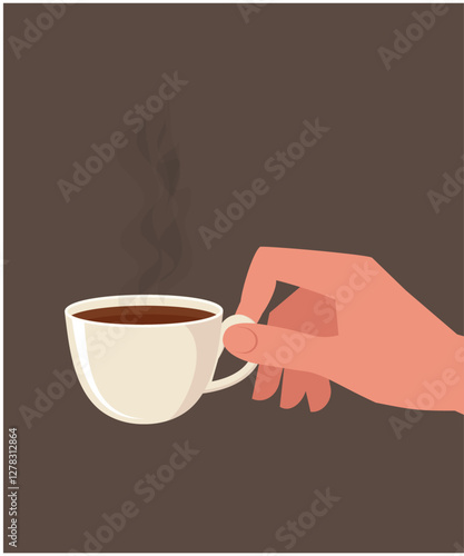 Рука с кофе в керамической чашке векторный значок, изолированный на белом фоне