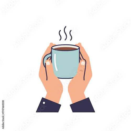 Рука с теплым векторным значком чая, изолированным на белом фоне