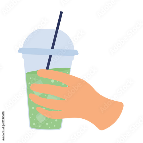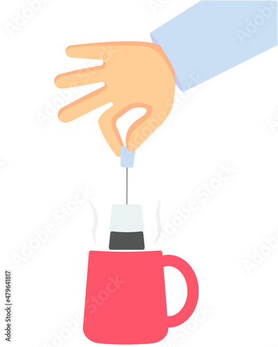 Руки, держащие пакетик чая для заваривания зеленого ароматного напитка, векторный значок, изолированный на белом фоне