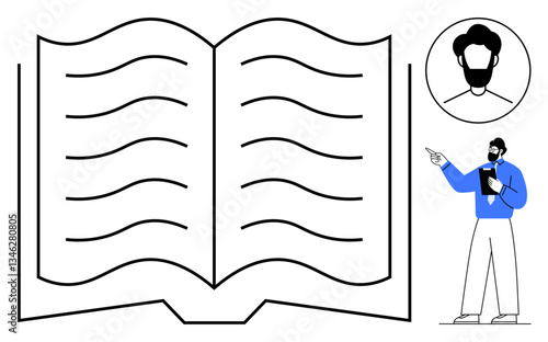 Красивый мужчина-персонаж, общающийся с помощью векторной иконки мобильного телефона. Парень-студент, держащий в руках телефон, выделенный на белом фоне