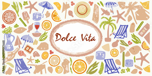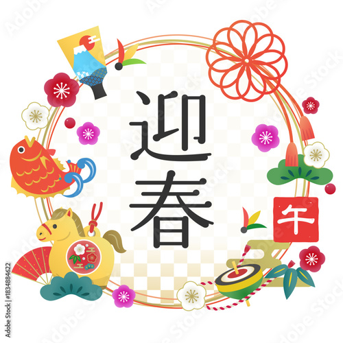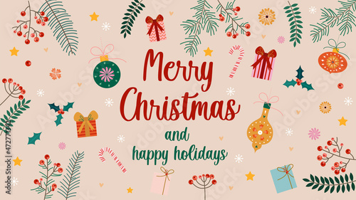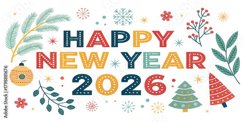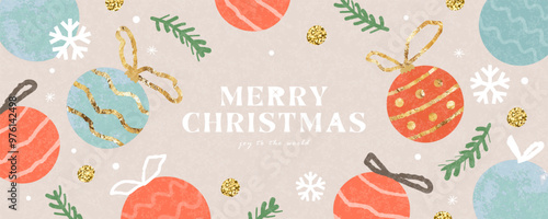Поздравительный баннер с новым годом 2024 в модном геометрическом минималистичном стиле. Праздничные елочные безделушки, декоративные элементы дизайна Мемфиса, векторная иллюстрация