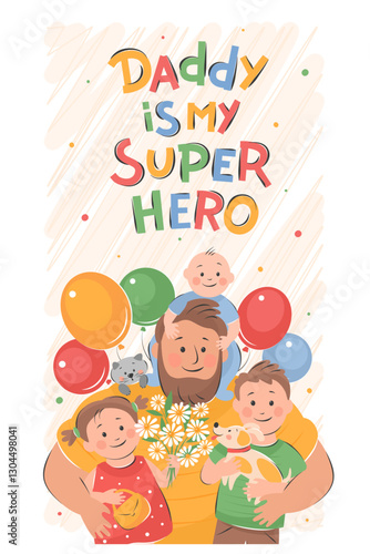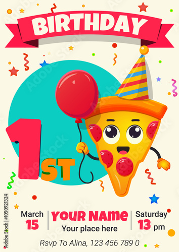 Векторная иллюстрация шаблона дизайна плаката для вечеринки "Счастливые дети". Веселые дети держат в руках приглашение на веселое празднование