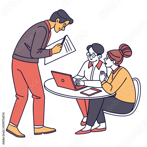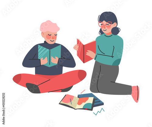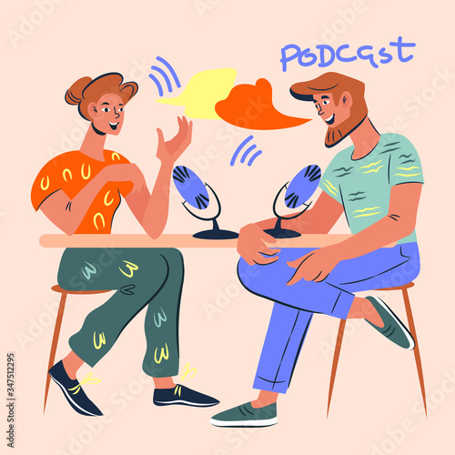 Счастливая молодая пара, сидящая за столиком в кафе, наслаждающаяся кофейным напитком и разговаривающая друг с другом, плоская векторная иллюстрация. Коллеги, друзья делают перерыв на кофе.