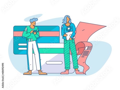 Счастливая молодая пара сидит за столиком в кафе, наслаждаясь кофейным напитком и разговаривая друг с другом, плоская векторная иллюстрация. Коллеги, друзья делают перерыв на кофе.