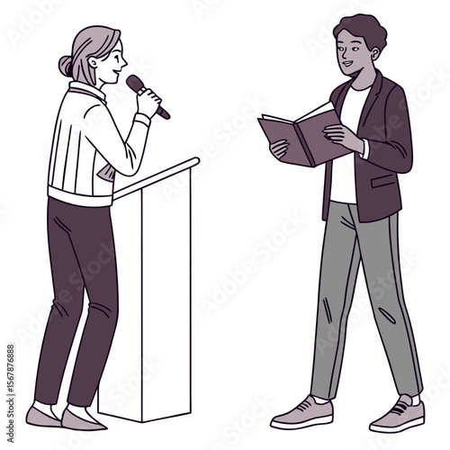 Счастливая пара пьет кофе, чтобы пойти во время прогулки по улице, плоская векторная иллюстрация. Перерыв на кофе. Любовь. Отношение.