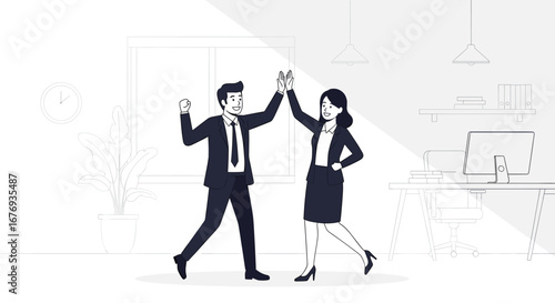 Счастливая пара вместе пьет кофе навынос, плоская векторная иллюстрация. Мужские и женские персонажи, деловые люди, коллеги, друзья, отдыхающие. Время кофе.