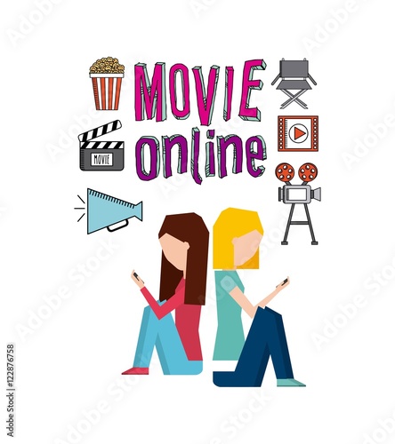 Счастливая пара идет в кино, держась за руки, плоская векторная иллюстрация. Попкорн, хлопушки, содовая. Индустрия развлечений. Романтическое свидание.
