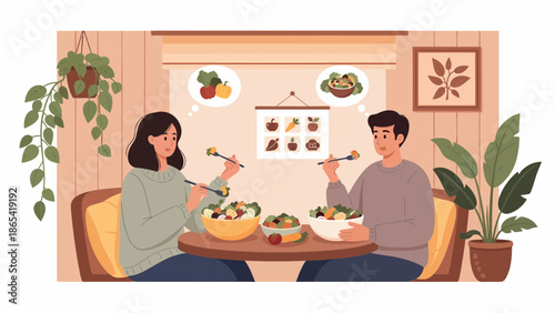 Счастливая пара сидит и обнимает друг друга. Векторная иллюстрация праздника. Романтическая пара отдыхает и наслаждается рождественским настроением дома. Мужчина и женщина готовят вместе.