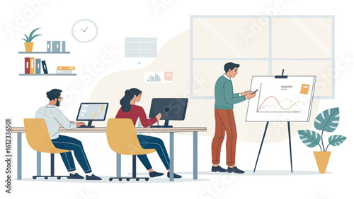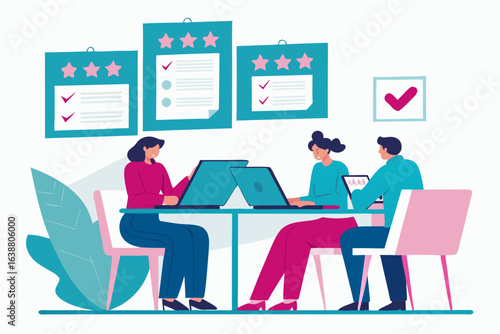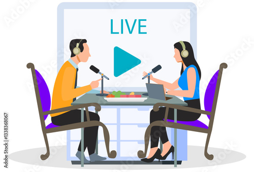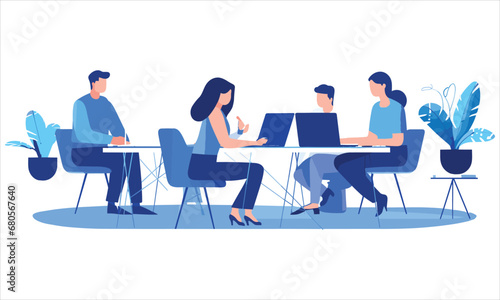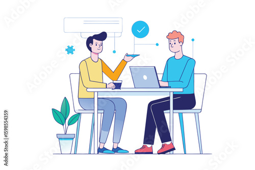 Счастливая пара отдыхает, сидя за столиком в кафе, пьет кофе и разговаривает друг с другом, плоская векторная иллюстрация. Перерыв на кофе.