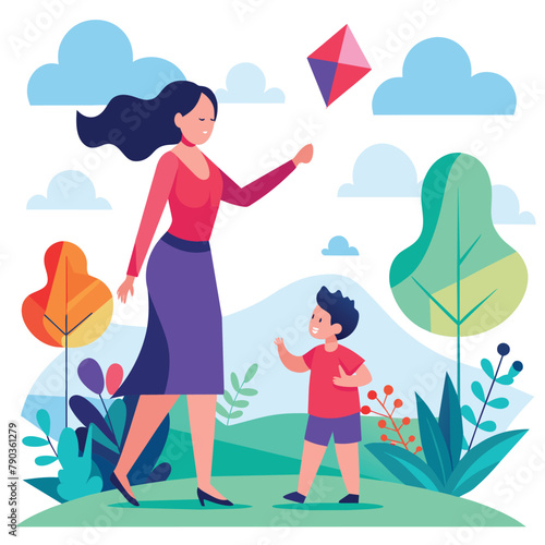 Счастливый отец гуляет с сыном в парке, плоская векторная иллюстрация. Папа и ребенок проводят время вместе. Отношения между родителями и детьми, счастливое отцовство и воспитание детей. Мероприятие в честь дня отца.
