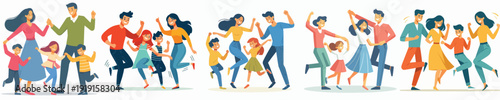 Счастливые семейные персонажи отец и мать со своими детьми, векторная иллюстрация дизайна в плоском стиле, изолированная на белом фоне. Воспитание детей, материнство, отцовство, отцовство, отношения между родителями и детьми.