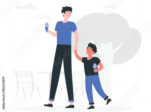Счастливая пара, идущая вместе, держась за руки, векторная иллюстрация дизайна в плоском стиле, изолированная на белом фоне. Семейные отношения, влюбленные люди.