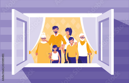 Счастливая семья, проводящая время вместе дома векторная иллюстрация. Веселые отец и мать с мальчиком-сыном сидят на диване