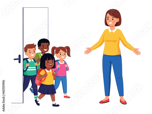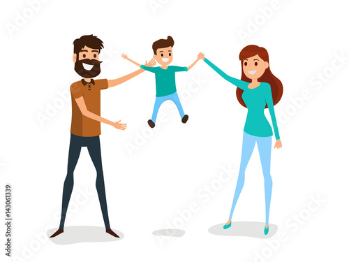 Векторная иллюстрация счастливой семьи. Отец, мать и сын, держащиеся за руки, элемент дизайна в плоском стиле, значок, выделенный на белом фоне.