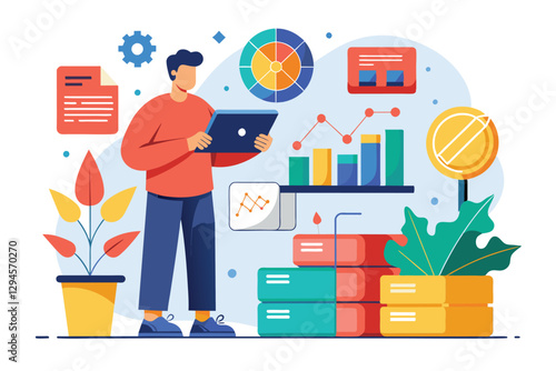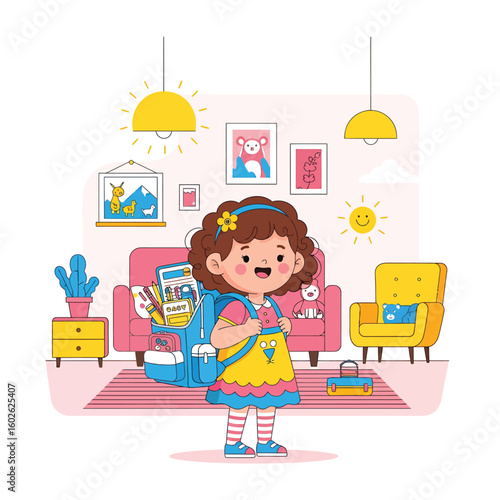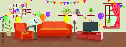 Векторная иллюстрация счастливого семейного отца, матери с двумя сыновьями, смотрящими телевизор. Интерьер гостиной. Дизайн в плоском стиле.