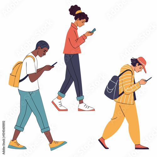 Счастливые отец и сын вместе отправляются в поход, плоская векторная иллюстрация. Семейные персонажи ходят в походы, путешествуют с рюкзаками. Отношения между родителями и детьми, счастливое отцовство и воспитание детей. Активный отдых на свежем воздухе.