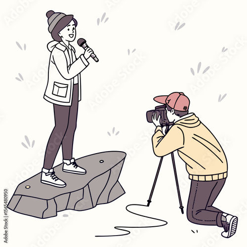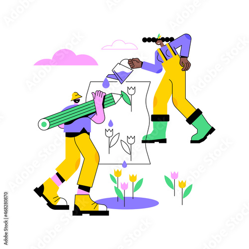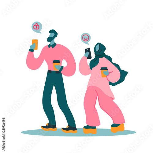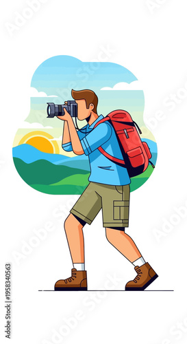 Счастливые отец и сын вместе отправляются в поход, плоская векторная иллюстрация. Семейные персонажи отправляются в поход, путешествуя с рюкзаками. Отношения между родителями и детьми, счастливое отцовство и воспитание детей. Активный отдых на свежем воздухе.