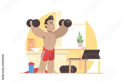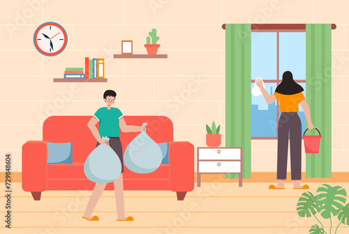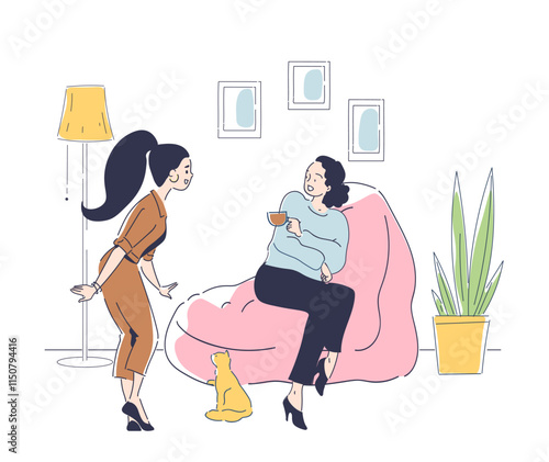 Счастливый отец читает книгу сыну, сидя в кресле в гостиной, плоская векторная иллюстрация. Папа и ребенок проводят время вместе. Отношения между родителями и детьми, счастливое отцовство и воспитание детей.
