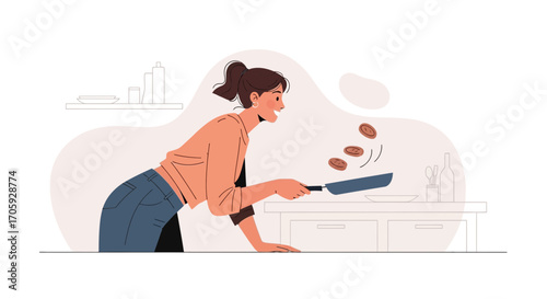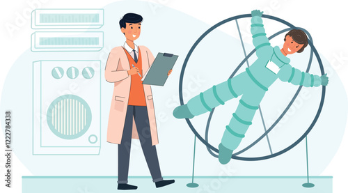 Плоский вектор жеста примирения счастливых подруг. Молодая женщина, стоящая на мосту и обнимающая иллюстрацию. Концепция дружбы, общения, любви и доверия