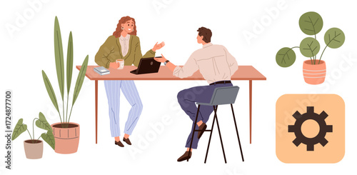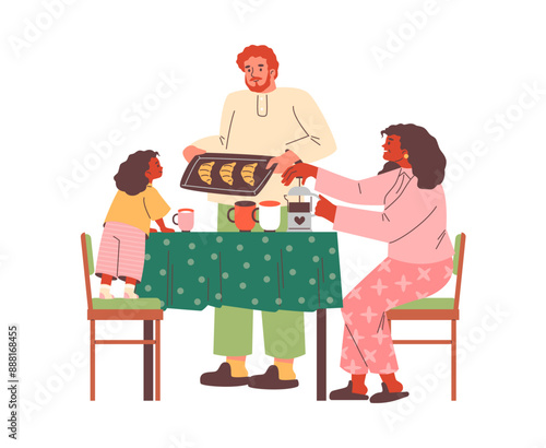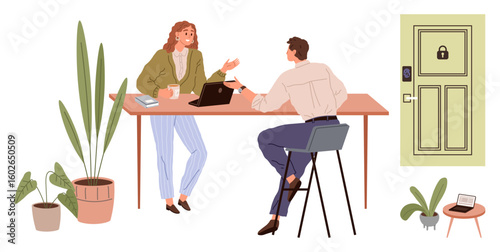 Счастливые друзья едят пиццу вместе, сидя за столом в векторной иллюстрации пиццерии. Пара парней наслаждается фаст-фудом и отдыхает в ресторане за обедом и приятной беседой